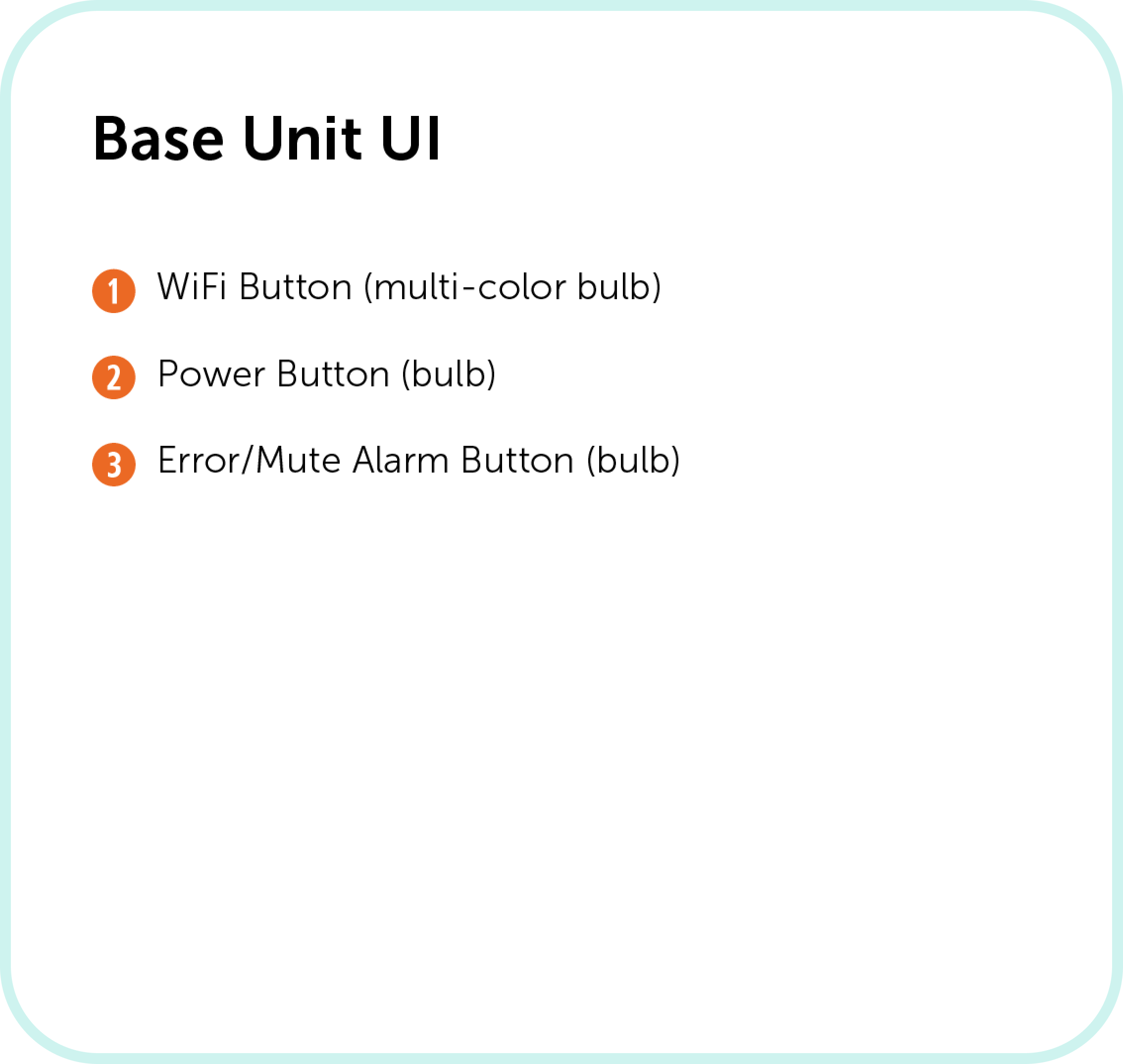 The initial base unit interface was based on the existing product UI that included a small screen to display error icons if the system was experiencing a corresponding error.