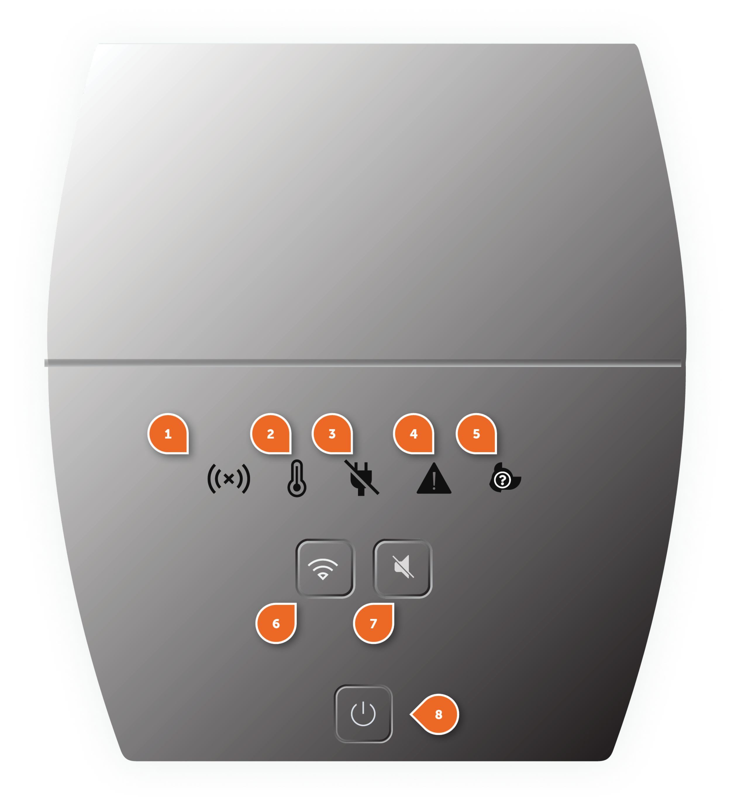 The interface also included three buttons for powering the system on/off, Wi-Fi provisioning and resetting, and muting error alarms.